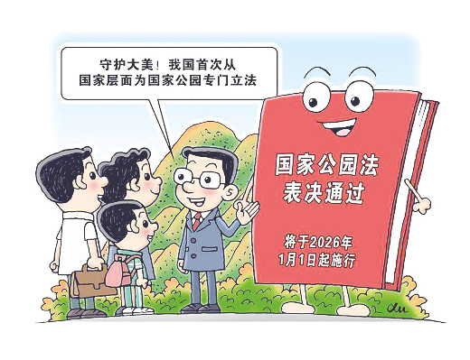 近日,十四届全国人大常委会第十七次会议表决通过《中华人民共和国国家公园法》(以下简称国家公园法),自2026年1月1日起施行。这是我国首次从国家层面针对国家公园专门立法,标志着以国家公园为主体的自然保护地体系建设进入了法治化、规范化的新阶段。